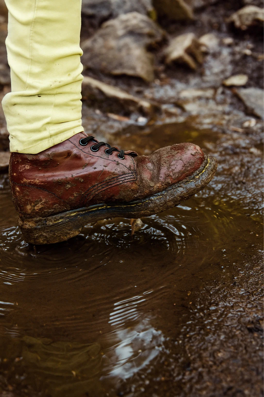 Textura engrosada que te da tracción superior en superficies mojadas y resbalosas. Evita caídas peligrosas y camina seguro sobre pisos húmedos, escalones mojados o senderos lodosos sin perder el equilibrio